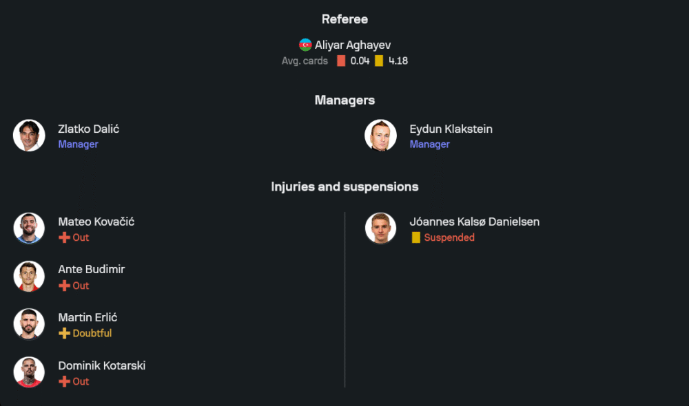 ฝั่งทีมเยือนกำลังอยู่ในช่วงเวลาที่แฟนบอลท้องถิ่นภาคภูมิใจที่สุดชุดหนึ่งในประวัติศาสตร์ชาติ หลังเก็บชัยในบ้านเหนือเช็กและมอนเตเนโกรแบบสุดห้าว พร้อมสถิติ 5 นัดหลังในกลุ่มชนะถึง 4 แพ้แค่โครเอเชียเกมเดียว สภาพทีมก่อนบุกโครเอเชียถือว่าพร้อมรบเกือบเต็มร้อย มีเพียง โยอันเนส คัลเซอ ดาเนียลเซน ที่ติดโทษแบน