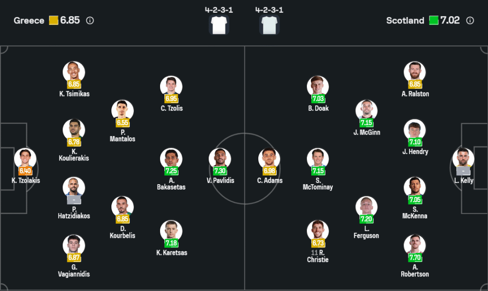 ฝั่งสกอตแลนด์ของคลาร์กถือไพ่เหนือกว่าในเรื่องความต่อเนื่อง รูปแบบการเล่นชัดเจน เล่นเป็นทีมเดียวกันมาหลายปี การประสานงานของ แม็กโทมิเนย์, แม็กกินน์ และ โรเบิร์ตสัน สร้างโอกาสได้เสมอเมื่อทีมต่อบอลขึ้นหน้า ยิ่งเจอกรีซที่ต้องเปิดเกมสู้ต่อหน้าแฟนบอล ก็ยิ่งเปิดช่องให้ทีมเยือนฉวยโอกาสสวนกลับเร็วตามสไตล์ตาร์ตันอาร์มีได้ตลอด 90 นาที