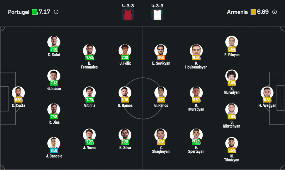 นี่คือเกมที่ช่องว่างฝีเท้าเยอะที่สุดคู่หนึ่งในรอบคัดเลือกปีนี้ มองในเชิง วิเคราะห์บอล แล้ว โปรตุเกสเหนือกว่าทุกด้าน ทั้งแท็กติก ความเร็ว เทคนิค ความเฉียบขาด และมิติการเข้าทำ ขาดแค่โรนัลโดคนเดียวไม่ได้ทำให้ความอันตรายลดลงมากนัก ตรงกันข้าม การให้โอกาสตัวรุกอย่างเลเอาและรามอสได้พิสูจน์ตัวเองยิ่งทำให้เกมนี้มีความหลากหลายมากขึ้น ในขณะที่อาร์เมเนียต้องมารับมือเกมรุกระดับท็อปโดยมีสภาพทีมไม่สมบูรณ์ จึงมีโอกาสสูงที่จะโดนบุกกระหน่ำแบบแทบไม่มีช่องสวนกลับ