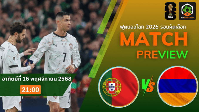 ศึกฟุตบอลโลก 2026 รอบคัดเลือก โซนยุโรป กลุ่ม F คืนนี้พร้อมปะทุความเดือดอีกครั้ง เมื่อทีมชาติ โปรตุเกส จ่าฝูงของกลุ่ม เตรียมเปิดสนาม อวิว่า สเตเดี้ยม ต้อนรับการมาเยือนของ อาร์เมเนีย ทีมอันดับบ๊วยของตาราง เกมนี้นอกจากจะมีความหมายต่อการการันตีตั๋วเข้ารอบสุดท้ายแล้ว ยังเป็นการพิสูจน์ศักดิ์ศรีว่าฝอยทองจะกลับมาท็อปฟอร์มได้หรือไม่ หลังฟอร์มเริ่มแกว่งให้เห็นในช่วงสองเกมหลัง การเจอกันคราวนี้จึงยิ่งกว่าการแข่งขันธรรมดา เพราะนี่คือเกมที่แฟนบอลทั้งโลกจับตา ราคาบอลวันนี้เปิดแรงไม่เกรงใจใคร ฝอยทองต่อหนักถึง 2.75 บ่งบอกชัดว่ามาตรฐานเหนือกว่าเต็มชั้น และบทนี้ “บ้านกีฬา” จะพาทุกคนเจาะลึกทุกมุมแบบเข้ม ๆ ระดับนักวิเคราะห์มืออาชีพ พร้อมแทรก ตารางบอลวันนี้ ให้ตามเช็กกันได้แบบเนียน ๆ ระหว่างอ่าน