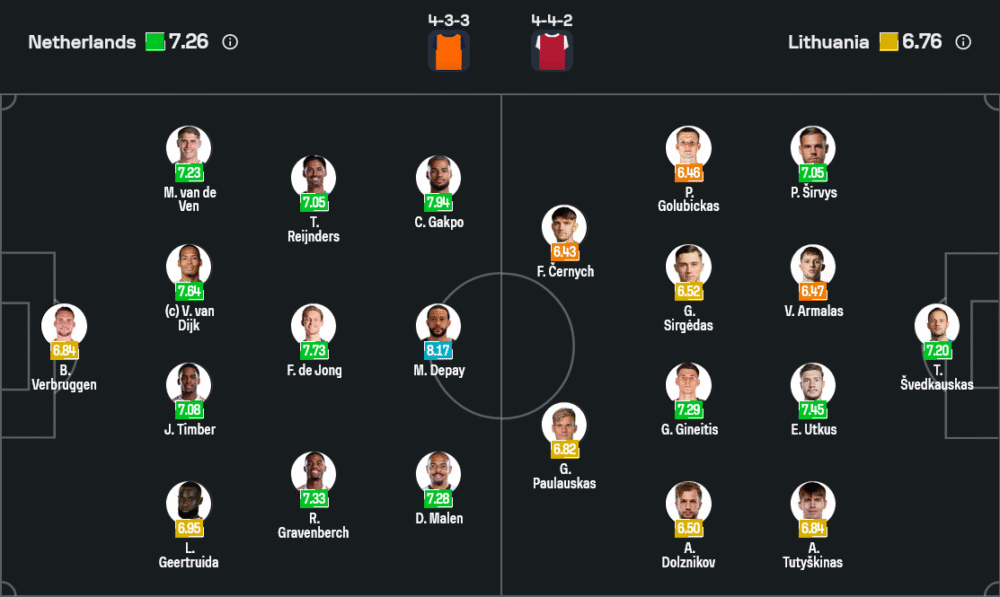 จากมุมมองเชิง วิเคราะห์บอล ทัพอัศวินสีส้มจะเป็นฝ่ายคุมเกมตั้งแต่นาทีแรก ไล่บุกด้วยความเร็วจากริมเส้นของกัคโปและมาเลน ผสานกับการทะลุช่องจากเดอ ย็อง และไคลเวิร์ต ด้านลิธัวเนียคงถอยลงไปตั้งรับลึก รอจังหวะสวนกลับจากแชร์นิคห์กับแนวรุกอีกคน หวังใช้ความผิดพลาดเล็ก ๆ เป็นประตูสร้างเซอร์ไพรส์