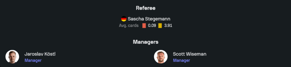 เช็กลงสนามด้วยชุดหลักแทบทุกตำแหน่ง จากภาพตัวจริง Sofascore แบ็กขวาเป็น วลาดิเมียร์ คูฟาล ที่ได้คะแนนสูงถึง 7.27 ส่วนคู่เซ็นเตอร์ วีติก–เฮลเลแบรนด์ ยืนคุมหลังอย่างมั่นใจ ด้านเกมรุกนำโดย ลูคัส โพรโวด, มัตเตโอ ราเยส และ คาเรล ดาเน็ก คอยทำเกมหนุนหลัง โชรี่ ที่เป็นตัวจบสกอร์ เกมนี้เช็กต้องการชัยชนะเพื่อยืนพื้นที่เพลย์ออฟ จึงคาดว่าจะเปิดเกมรุกเต็มกำลังตั้งแต่ต้นเกมแบบไม่มีกั๊ก