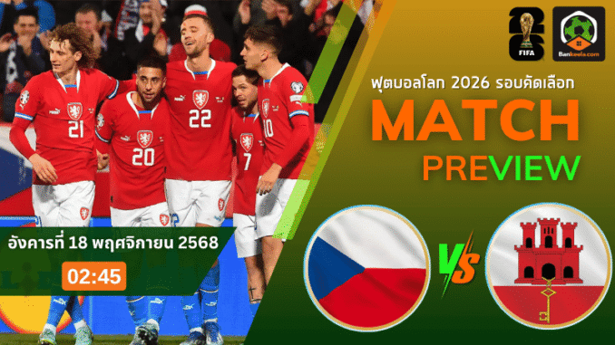 ศึก ฟุตบอลโลก 2026 รอบคัดเลือก โซนยุโรป เดือดสะเทือนอันดรูฟ สตาดิโอน คืนวันอังคารที่ 18 พฤศจิกายน 2568 เวลา 02:45 น. เมื่อ สาธารณรัฐเช็ก เปิดรังรับมือ ยิบรอลตาร์ คู่ที่หลายคนจับตา เพราะเป็นเกมที่เจ้าถิ่นต้องการชัยชนะเพื่อย้ำตำแหน่งพื้นที่เพลย์ออฟแบบสุดแรง บรรยากาศคึกคักแบบสุด ๆ โดยเฉพาะบรรดานักลงทุนที่จับตา ราคาบอลวันนี้ ว่าจะไหลไปทางไหน หลังทั้งคู่ส่งผังตัวจริงลงสนามอย่างเข้มเต็มระบบ ขณะที่ “บ้านกีฬา” ขอพาแฟนบอลทุกคนเกาะสนามไปพร้อมกัน พร้อมแทรกข้อมูลจาก Sofascore และเชื่อมโยงกับ ตารางบอลวันนี้ ให้แบบดูง่ายครบจบในบทเดียว