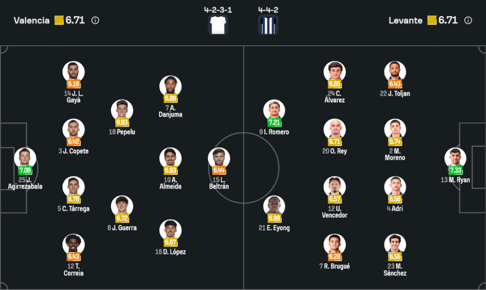ขณะเดียวกัน เลบานเต้น่าจะไม่บุกผลีผลาม ตั้งใจวางหมากรับแน่นแล้วรอโต้กลับ ใช้เอยองกับโรเมโรเป็นหัวหอกวิ่งสับขาหลอกแนวรับค้างคาว ช่วงที่บาเลนเซียดันไลน์สูง หากเสียบอลตรงกลางสนามจะกลายเป็นโอกาสทองของทีมเยือนทันที จุดที่ต้องจับตาคือการดวลตรงกลางระหว่าง เปเปลู กับ เวนเซดอร์ ใครคุมจังหวะได้มากกว่ามีผลอย่างยิ่งต่อรูปเกม