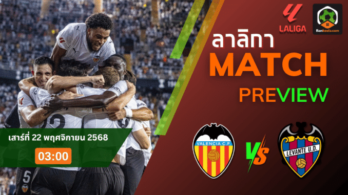 ศึกหนีตายบนเวที ลาลีกา คืนวันเสาร์ที่ 22 พฤศจิกายน 2568 เวลา 03.00 น. ตามเวลาไทย แฟนบอลต้องห้ามพลาด เมื่อ บาเลนเซีย ทีมอันดับ 17 เปิดรังร้อนระอุที่ เมสตาย่า สเตเดี้ยม รับการมาเยือนของอริร่วมแคว้นอย่าง เลบานเต้ ทีมอันดับ 19 ที่ผลงานย่ำแย่ไม่แพ้กัน เกมนี้ถูกจับโยนลงผังถ่ายทอดสดคู่ดึกให้แฟนบอลเช็กจากหน้า ตารางบอลวันนี้ ได้แบบชัดๆ เพราะมีเดิมพันคือคะแนนสำคัญในการหนีโซนตกชั้น