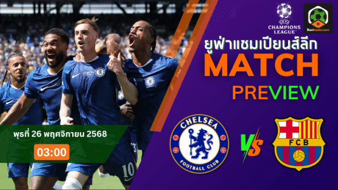 คืนวันพุธที่ 26 พฤศจิกายน 2568 เวลา 03.00 น. แฟนบอลห้ามกะพริบตาเมื่อ เชลซี พร้อมเปิดรังสแตมฟอร์ด บริดจ์ รับการมาเยือนของยักษ์ใหญ่จากสเปนอย่าง บาร์เซโลน่า ในศึก ยูฟ่าแชมเปียนส์ลีก รอบลีกสเตจ เกมนี้จัดเต็มทั้งชื่อชั้น นักเตะระดับเวิลด์คลาส และแรงกดดันจากตารางคะแนนที่เบียดกันอยู่กลางตาราง โดยอิงจาก ตารางบอลวันนี้ สถานการณ์ล่าสุด เชลซีรั้งอันดับ 12 ส่วนบาร์ซ่านั่งอยู่ที่ 11 ชนิดแพ้ไม่ได้ทั้งคู่เพราะแต้มสูสีสุดๆ