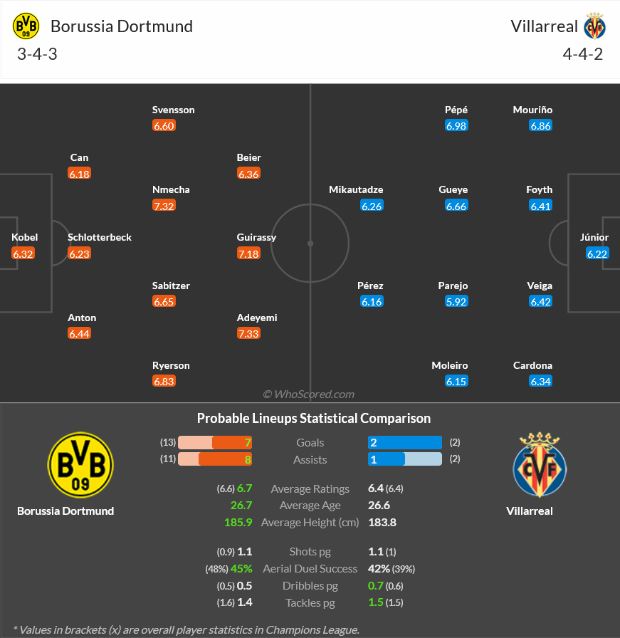 อย่างไรก็ดี บียาร์เรอัลเป็นทีมที่ขึ้นเกมจากแดนกลางได้ลื่นไหล ปาเรโฆยังคงเป็นมันสมองในจังหวะจ่ายบอลทะลุช่อง หากดอร์ทมุนด์ดันไลน์สูงเกินไปและเสียบอลกลางทาง จังหวะสวนกลับที่ใช้มิกูตัดเซกับเพเป้สปีดใส่แนวรับที่ไม่มีซือเลอคุมหลังบ้าน อาจกลายเป็นจุดเปลี่ยนของเกมได้เหมือนกัน