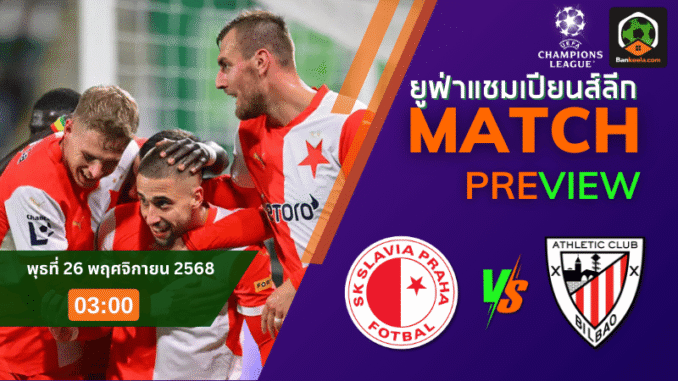 คืนวันพุธที่ 26 พฤศจิกายน 2568 เวลา 03.00 น. ที่ฟอร์ทูน่า อารีน่า กรุงปราก แฟนบอลเตรียมลุ้นกันแบบห้ามกระพริบตา เมื่อ สลาเวีย ปราก ทีมหัวตารางลีกเช็ก เปิดบ้านรับการมาเยือนของ แอธเลติก บิลเบา ตัวแทนจากสเปนในศึกยูฟ่าแชมเปียนส์ลีก รอบลีกสเตจ เกมนี้สำคัญกับทั้งสองฝั่ง เพราะแต้มในตารางกลุ่มเบียดกันทุกคะแนน ผิดพลาดนิดเดียวอาจหลุดจากเส้นทางลุ้นเข้ารอบได้ทันที จากหน้า ตารางบอลวันนี้ ออกมาเคารพชื่อชั้นทีมกระทิงดุเล็กน้อย โดยปรับราคาให้บิลเบาเป็นฝ่ายบุกมาต่อปป.ลบห้า ท่ามกลางคำถามว่าจะจริงตามกระดาน หรือเจ้าถิ่นจะหักปากกาเซียนในรังตัวเอง