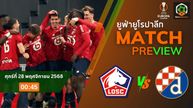 คืนวันศุกร์ที่ 28 พฤศจิกายน 2568 เวลา 00.45 น. ตามเวลาไทย แฟนบอลต้องห้ามพลาดศึก ยูฟ่า ยูโรปาลีก ที่สต๊าด ปีแอร์ โมรัว เมื่อเจ้าถิ่น ลีลล์ เปิดบ้านรับมือ ดินาโม ซาเกร็บ ยักษ์ใหญ่จากโครเอเชีย เกมนี้สำคัญสุดๆ เพราะทั้งสองทีมมีโอกาสลุ้นติดท็อปโซนของลีกเฟส หากคว้า 3 คะแนนได้จะขยับเข้าใกล้พื้นที่เข้ารอบแบบอัตโนมัติทันที
