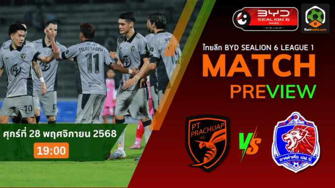 ศึกไทยลีก 1 ฤดูกาล 2025/26 คืนวันศุกร์ที่ 28 พฤศจิกายน 2568 เวลา 19.00 น. ที่สนามสามอ่าว สเตเดียม บรรยากาศริมทะเลประจวบฯ เตรียมลุกเป็นไฟ เมื่อ “ต่อพิฆาต” พีที ประจวบ เอฟซี เปิดบ้านรับการมาเยือนของ “สิงห์เจ้าท่า” การท่าเรือ เอฟซี เกมนี้ไม่ใช่แค่ศึกชิงสามแต้มธรรมดา แต่คือจุดชี้ชะตาทิศทางของทั้งสองทีมในช่วงโค้งสำคัญของเลกแรก แฟนบอลที่เปิดหาโปรแกรมใน ตารางบอลวันนี้ คู่นี้คือหนึ่งในแมตช์ที่ต้องปักหมุดรอดูแบบห้ามกระพริบตา