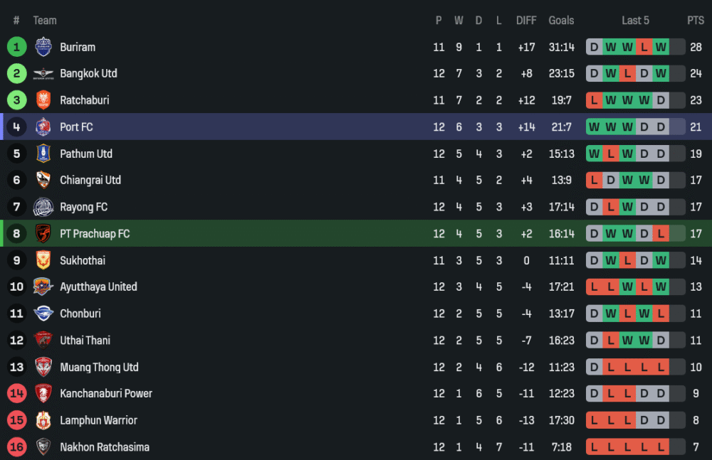ทางด้าน การท่าเรือ ลงสนามในไทยลีกไปแล้ว 12 นัดเช่นกัน แต่ผลงานจัดจ้านกว่าอย่างชัดเจน ชนะ 6 เสมอ 3 แพ้ 3 เก็บได้เฉลี่ย 1.75 แต้มต่อเกม ยิงรวม 21 ประตู เสียเพียง 7 ลูก แนวรุกมีความหลากหลาย ทั้งจังหวะลากเลื้อยจากริมเส้นและการประสานงานตรงกลางสนาม พีรดนย์ ฉ่ำรัศมี กลายเป็นตัวจบสกอร์คนสำคัญกดไปแล้ว 4 ประตู ส่วน ฟรานซิสโก ไคลสัน เมนเดส ดา ซิลวา ทำผลงานสุดเด่นในบทบาทตัวสร้างสรรค์เกมด้วยผลงาน 5 แอสซิสต์ เกมเยือนของสิงห์เจ้าท่าถือว่าไว้ใจได้ ชนะถึง 4 จาก 10 นัดหลังสุดในลีก แนวรับที่มี ฟาลเคสการ์ด คุมด่านสุดท้ายช่วยให้ทีมเสียประตูน้อยกว่าทีมอื่นระดับหัวตารางอย่างเห็นได้ชัด