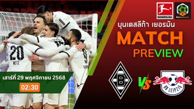 ศึก บุนเดสลีกา คืนวันเสาร์ที่ 29 พฤศจิกายน 2568 เวลา 02.30 น. ที่โบรุสเซีย พาร์ค แฟนบอลต้องเตรียมกาแฟเอาไว้ให้ดี เพราะเป็นการดวลกันระหว่างเจ้าถิ่นอย่าง กลัดบัค ทีมฟอร์มกำลังพุ่งชนชัยต่อเนื่อง รับการมาเยือนของ ไลป์ซิก รองจ่าฝูงที่เกมรุกดุดันที่สุดทีมหนึ่งของลีก ตอนนี้หลายคนเปิดเช็กโปรแกรมบนหน้า ตารางบอลวันนี้ แล้วต้องหยุดสายตาที่คู่นี้แบบอัตโนมัติ เพราะเป็นแมตช์ที่ทั้งสองทีมต่างต้องการสามแต้มเพื่อยึดพื้นที่หัวตารางให้แน่น