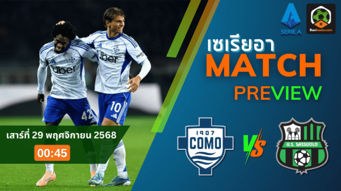 คืนวันเสาร์ที่ 29 พฤศจิกายน 2568 เวลา 00.45 น. สนามจูเซปเป้ ซินิกาญ่า ริมทะเลสาบอันหนาวเย็นจะร้อนระอุขึ้นมาทันที เมื่อเจ้าถิ่น โคโม่ ทีมม้ามืดอันดับ 6 เปิดบ้านรอรับการมาเยือนของ ซัสซูโอโล่ อันดับ 9 ในศึกใหญ่ของเวที เซเรียอา อิตาลี คู่นี้ถูกตีกรอบเอาไว้บนหน้า ตารางบอลวันนี้ เรียบร้อย เพราะเป็นการเจอกันของสองทีมสไตล์บุกจัด ใครพลาดแค่เสี้ยววินาทีมีสิทธิ์โดนลงโทษทันที