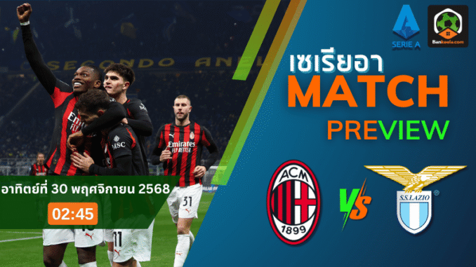 คืนวันอาทิตย์ที่ 30 พฤศจิกายน 2568 เวลา 02.45 น. แฟน กัลโช่ เซเรีย อา ต้องเปิดจอรอให้ดี เมื่อเอซี มิลานทีมรองจ่าฝูงเปิดรังซาน ซิโร่ ต้อนรับการมาเยือนของลาซิโอที่กำลังไล่ล่าพื้นที่ยุโรป เกมใหญ่ที่มีผลโดยตรงกับอันดับบนหัวตารางแบบนี้ บ้านกีฬามองว่านี่คือหนึ่งในคู่ที่น่าจับตามองที่สุดบนหน้า ตารางบอลวันนี้ เพราะนอกจากศักดิ์ศรีของสองยักษ์ใหญ่อิตาลีแล้ว ยังมีเดิมพันเรื่องความมั่นใจในโค้งสำคัญของฤดูกาล โดยเรตเปิดหน้าเอเชียให้มิลานเป็นฝ่ายต่อหนึ่งลูก (เอซี มิลาน ต่อ 1) ถือว่าให้ความเคารพแนวรับลาซิโอพอสมควร