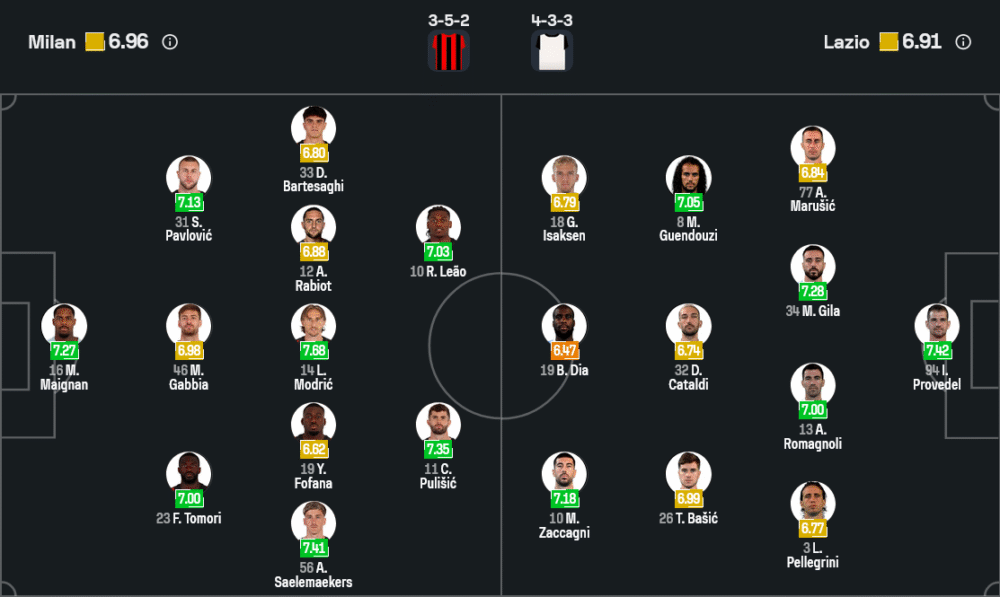 จากภาพจัดตัวล่าสุด มิลานวางหมากในระบบ 3-5-2 ใช้ ไมค์ เมนญ็อง เฝ้าเสา สามแนวรับมี ฟิกาโย โทโมริ ยืนคุมพื้นที่ร่วมกับ มัตเตโอ กับเบีย และ สตานิสลาฟ พาฟโลวิช ทำหน้าที่หยุดเกมรุกคู่แข่ง แดนกลางห้าคนจัด อเล็กซิส แซเลเมเกอร์ส กับ ลูก้า เปลเลกรินี่ยืนวิงแบ็กสองฝั่ง กลางในใช้ ยุสซุฟ โฟฟาน่า, ลูก้า โมดริช และ อาเดรียง ราบิโอต์ ประสานงานคุมจังหวะเกมรุกเกมรับ ส่วนคู่หัวหอกวางใจ ราฟาเอล เลเอา ที่สปีดจัดและเล่นหนึ่งต่อหนึ่งดุเดือด จับคู่กับ คริสเตียน พูลิซิช หรืออาจเป็นตัวสลับอย่าง ดาวเตะสำรองในทีม หากสตาร์ทีมชาติสหรัฐฯ ยังไม่สมบูรณ์เต็มร้อย
