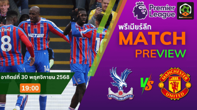 ค่ำคืนวันอาทิตย์ที่ 30 พฤศจิกายน 2568 เวลา 19.00 น. แฟนบอลอังกฤษเตรียมล็อกจอให้แน่น เมื่อ คริสตัล พาเลซ เปิดบ้านเซลเฮิร์สต์พาร์กรับการมาเยือนของ แมนเชสเตอร์ ยูไนเต็ด ในศึก พรีเมียร์ลีก ที่เดิมพันด้วยศักดิ์ศรีและอนาคตบนหัวตารางโดยตรง เกมนี้ทั้งสองทีมต่างมีบาดแผลจากถ้วยยุโรปและเกมลีกนัดล่าสุด ต้องลงสนามด้วยเป้าหมายเดียวคือแก้ตัวให้ได้ต่อหน้าแฟนบอลทั่วโลก