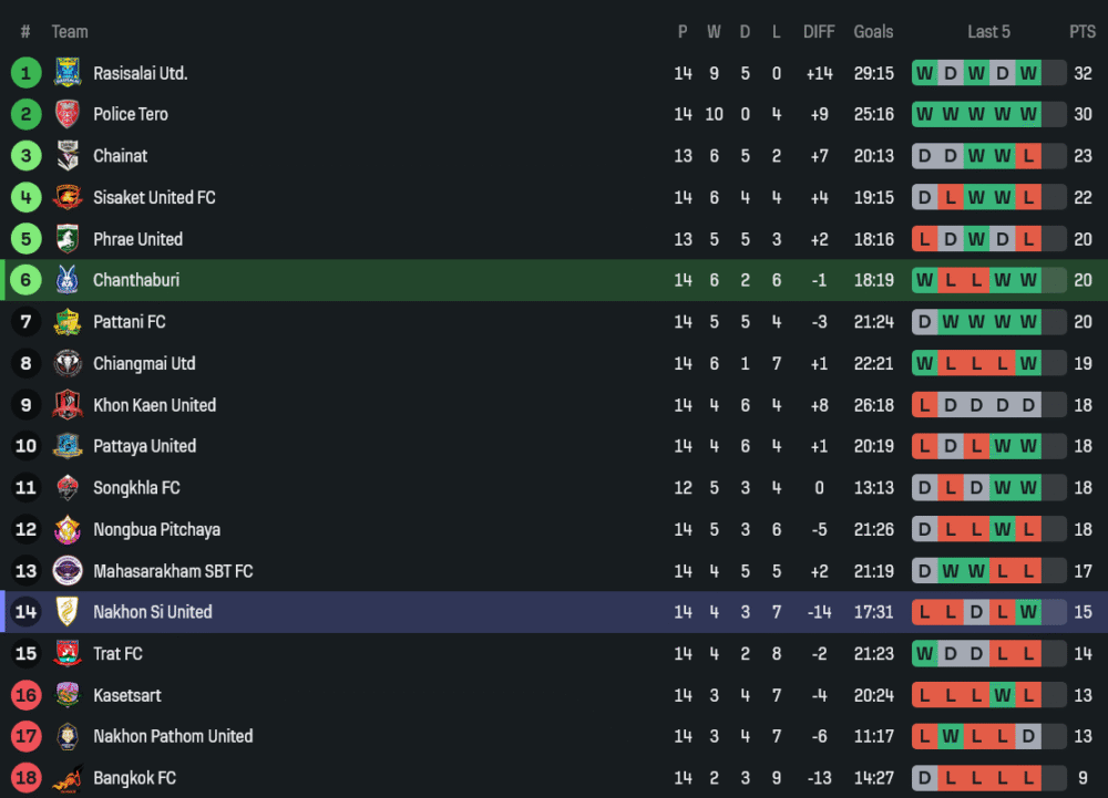 จากตัวเลขในฤดูกาลนี้ จันทบุรีลงสนาม 10 นัด ชนะ 4 เสมอ 1 แพ้ 5 ยิงได้ 13 เสีย 10 ลูกได้เสีย +3 แม้ฟอร์มโดยรวมยังแกว่ง แต่เมื่อได้เล่นในรังตัวเอง มักเปลี่ยนบรรยากาศเป็นทีมดุ ไล่บี้คู่แข่งตั้งแต่เสียงนกหวีดแรก ส่วน นครศรียูไนเต็ด เตะ 10 เกมเท่ากัน ชนะ 2 เสมอ 3 แพ้ 5 ยิงได้ 11 เสียถึง 24 ประตู ลูกได้เสียติดลบหนัก ทีมของโค้ชเยิร์ค สเตนบรุนเนอร์จึงไม่มีทางเลือกนอกจากบุกมาขอคะแนนกลับบ้านให้ได้
