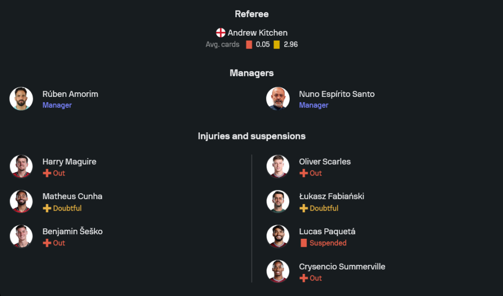 สามแนวรุกใช้ จาร์ร็อด โบเว่น ขยับไปยืนฝั่งขวา หลุยส์ กีลแญร์เม่ ลากเลื้อยทางซ้าย และหน้าเป้าเป็นนิโคลัส ฟูลค์ครูก หรือหัวหอกที่รับบทเพชฌฆาตในกรอบเขตโทษ แถมบนม้านั่งยังมีตัวสลับอย่าง จูลิโอ้, โตดิโบ หรือแข้งดาวรุ่งพร้อมเสียบ แต่ปัญหาสำคัญคือพวกเขาต้องขาด ลูคัส ปาเกต้า เพลย์เมกเกอร์ตัวหลักจากโทษแบน รวมถึงผู้รักษาประตูสำรองอย่าง ลูคัสซ์ ฟาเบียนสกี้ และดาวรุ่ง โอลิเวอร์ สคาร์เลส ที่ยังเจ็บ