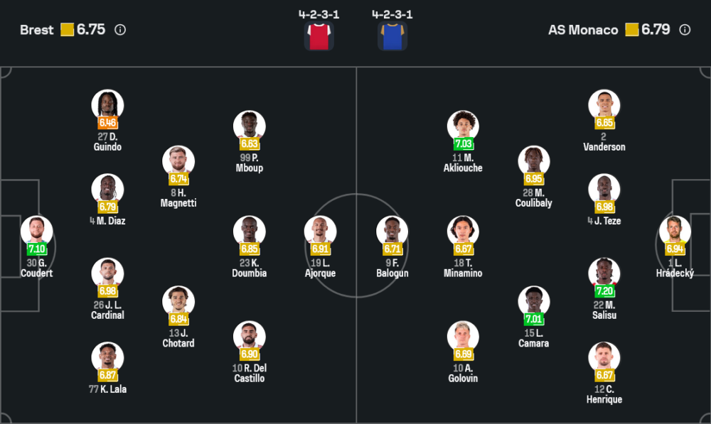 ในฝั่งโมนาโก จุดเด่นชัดเจนคือความหลากหลายในเกมรุก ทั้งมูฟเมนต์ของมินามิโนะที่ชอบถอยต่ำมารับบอลสร้างพื้นที่ให้เพื่อน การสอดมาทำประตูของโกโลวิน รวมถึงความเฉียบคมของบาโลกัน หากแนวรับแบรสต์หลุดโฟกัสเพียงเสี้ยววินาที โอกาสถูกลงโทษมีสูงมาก ขณะเดียวกันเกมริมเส้นของทีมราชรัฐก็อันตราย วานเดอร์สันกับเอ็นริเก้เติมสูงสร้างความกดดันให้แบ็กคู่แข่งทุกครั้งที่มีโอกาสเปิดบอล