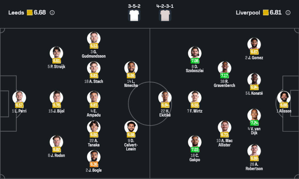 แดนกลางคู่รับหน้าที่ตัดเกมเป็น อเล็กซิส แม็ค อัลลิสเตอร์ เล่นร่วมกับ ไรอัน กราเฟนเบิร์ค ข้างหน้าเป็นสามตัวรุก โดมินิค โซบอสซ์ไล ทางขวา ฟลอเรียน เวียร์ตซ์ ยืนหน้าต่ำ และ โคดี้ กักโป ประจำการฝั่งซ้าย โดยมี อูโก้ เอคิทิเก้ ยืนหัวหอกคอยทะลวงแนวรับเจ้าบ้าน หากทุกคนเครื่องติดพร้อมกัน วันของแนวรับลีดส์อาจกลายเป็นฝันร้ายได้ง่ายๆ
