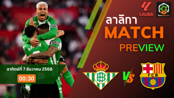 คืนวันอาทิตย์ที่ 7 ธันวาคม 2568 แฟนบอล ลาลิกา ต้องไม่กระพริบตา เมื่อ เรอัล เบติส เตรียมเปิดเอสตาดิโอ เด ลา การ์ตูฆ่า ต้อนรับจ่าฝูงอย่าง บาร์เซโลน่า เกมใหญ่ประจำสัปดาห์ของศึก ลาลีกา คู่ดึกเวลา 00.30 น. ตามเวลาไทย ใครเปิดหน้าเว็บเช็ก ตารางบอลวันนี้ จะเห็นชัดว่านี่คือแมตช์ที่ต้องกาปากกาแดงไว้ทันที เพราะความหมายของสามแต้มมีผลต่อทั้งการลุ้นพื้นที่ยุโรปของฝั่งเจ้าถิ่น และการรักษาบัลลังก์ของทีมเยือน
