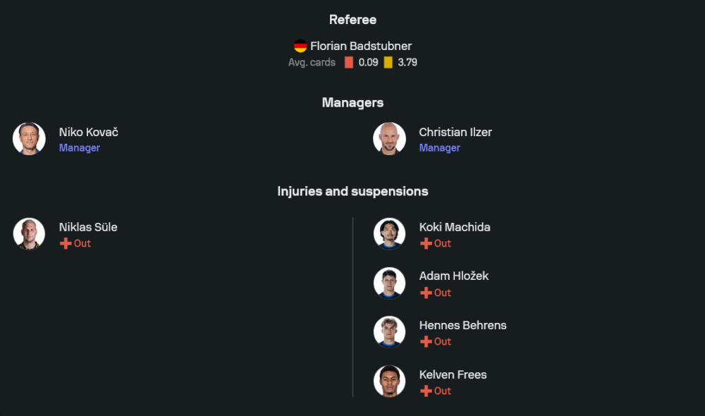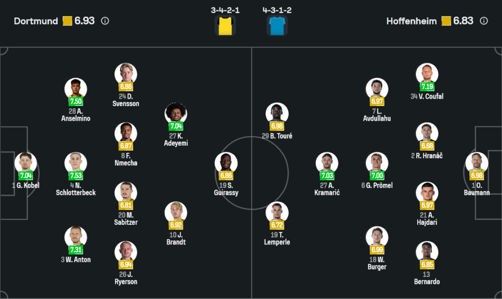 ลูกทีมของ นิโก้ โควัค เพิ่งสะดุดตกรอบเดเอฟเบ โพคาล จากการแพ้เลเวอร์คูเซ่นคาบ้าน 0-1 ทำให้เกมลีกนัดนี้เสือเหลืองต้องเน้นเป็นพิเศษเพื่อเรียกศรัทธาคืนจากแฟนๆ สภาพทีมถือว่าสมบูรณ์เกือบเต็มสูบ ขาดเพียง นิคลาส ซูเล่ กองหลังร่างยักษ์ที่เจ็บนิ้วเท้า นอกนั้นพร้อมลุยเต็มอัตราศึก โควัคเตรียมจัดระบบ 3-4-1-2 ซึ่งกลายเป็นโครงหลักในช่วงหลัง ผู้รักษาประตูยืนพื้นด้วย เกรกอร์ โคเบล แผงหลังสามคนใช้ วัลเดมาร์ อันตอน, นิโก้ ชล็อตเตอร์เบ็ค และ อาร่อน อันเซลมิโน่ คอยปิดเกมรุกคู่แข่ง