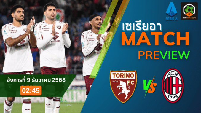 คืนวันอังคารที่ 9 ธันวาคม 2568 เวลา 02.45 น. สนามสตาดิโอ โอลิมปิโก้ ดิ โตริโน่ จะลุกเป็นไฟเมื่อ โตริโน่ ทีมอันดับ 13 เปิดรังรับมือยักษ์ใหญ่รองจ่าฝูงอย่าง มิลาน ศึกใหญ่บนเวทีกัลโช่ เซเรีย อา ที่มีทั้งศักดิ์ศรีและแต้มสำคัญเป็นเดิมพัน จากหน้า ตารางบอลวันนี้ จะเห็นชัดว่านี่คือหนึ่งในคู่ที่คอบอลต้องวงกลมไว้ เพราะสถานการณ์ของทั้งสองฝั่งต่างต้องการสามคะแนนสุดๆ