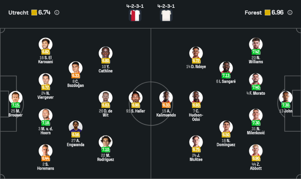 แท็คติกจากภาพล่าสุด ฟอเรสต์ปรับมาใช้ระบบ 4-2-3-1 เช่นกัน นายด่านมือหนึ่งเป็น จอห์น ที่ยืนเฝ้าเสาด้วยฟอร์มเหนียวแน่น แผงหลังประกอบด้วย นีโก้ วิลเลียนส์ ทางขวา คู่เซนเตอร์เป็น นิคล่า มิเลนโควิช กับ โมราโต้ ส่วนแบ็กซ้ายใช้ แอ๊บบ็อตต์ ริมเส้นทั้งสองฝั่งคือ ฮัดสัน-โอดอย กับ เอ็นดอย ที่พร้อมฉีกแนวรับเจ้าถิ่นทุกเมื่อ กลางคู่มี ซ็องกาเร่ จับมือกับ โดมิงเกวซ รับหน้าที่เบรกเกมและพาบอลต่อขึ้นหน้า ขณะที่หน้าเป้าใช้ คาลิมูเอนโด้ คอยจบสกอร์จากโอกาสที่เพื่อนปั้นให้