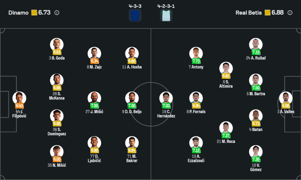 จากข้อมูลและไลน์อัปบนสนาม เบติสเลือกใช้ระบบ 4-2-3-1 ผู้รักษาประตูเป็น อัลบาโร่ บาเญส ยืนหลังบ้าน แบ็กขวาใช้ ไอตอร์ รุยบัล คู่เซนเตอร์เป็น มาร์ค บาร์ตร้า จับคู่กับ นาตาน ขณะที่แบ็กซ้ายเป็น บาเลนติน โกเมซ กลางคู่หน้ากองหลังวาง เซร์กี อัลติมิร่า ยืนคู่กับ มาร์ก โรก้า ช่วยตัดเกมและออกบอลจากด่านสอง แถวหน้าสามตัวรุกมี อันโทนี ยืนฝั่งขวา อับเด เอลซัลซูลี ลากเลื้อยทางซ้าย และ ปาโบล ฟอร์นัลส์ ปั้นเกมตรงกลาง สนับสนุนหัวหอกตัวเป้า เซซาร์ เอร์นานเดซ ที่ค้นหาประตูในพื้นที่สุดท้าย