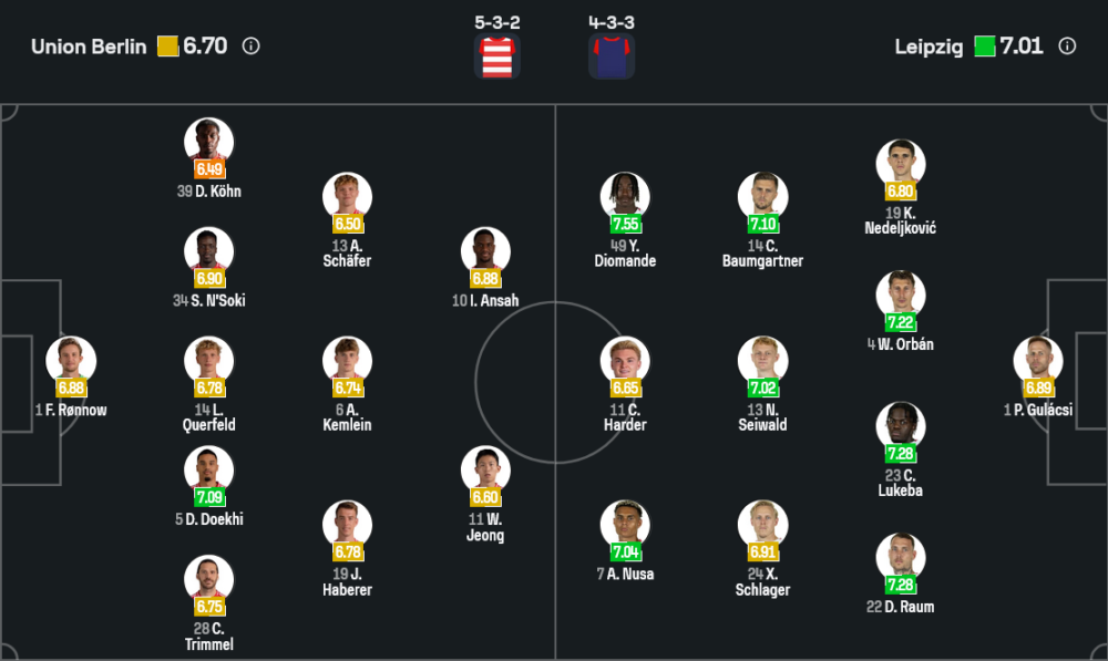 แดนกลางสามคนใช้บริการ อันดราส ชาเฟอร์, อเล็กซ์ เค็มไลน์ และ ยานิค ฮาเบเรอร์ คอยวิ่งตัดเกมและคุมจังหวะ ส่วนเกมรุกฝากอนาคตไว้กับคู่หอกอย่าง อิลยาส อันซาห์ กับ ชอง วู ยอง ที่ต้องสลับกันไล่บีบสูงเพื่อกดดันแนวรับไลป์ซิกตั้งแต่โซนแรก แม้จะขาด โรเบิร์ต สคอฟ ที่ยังเจ็บอยู่ แต่ภาพรวมยังถือว่ามีพลังพอให้สู้ได้ในบ้านตัวเอง