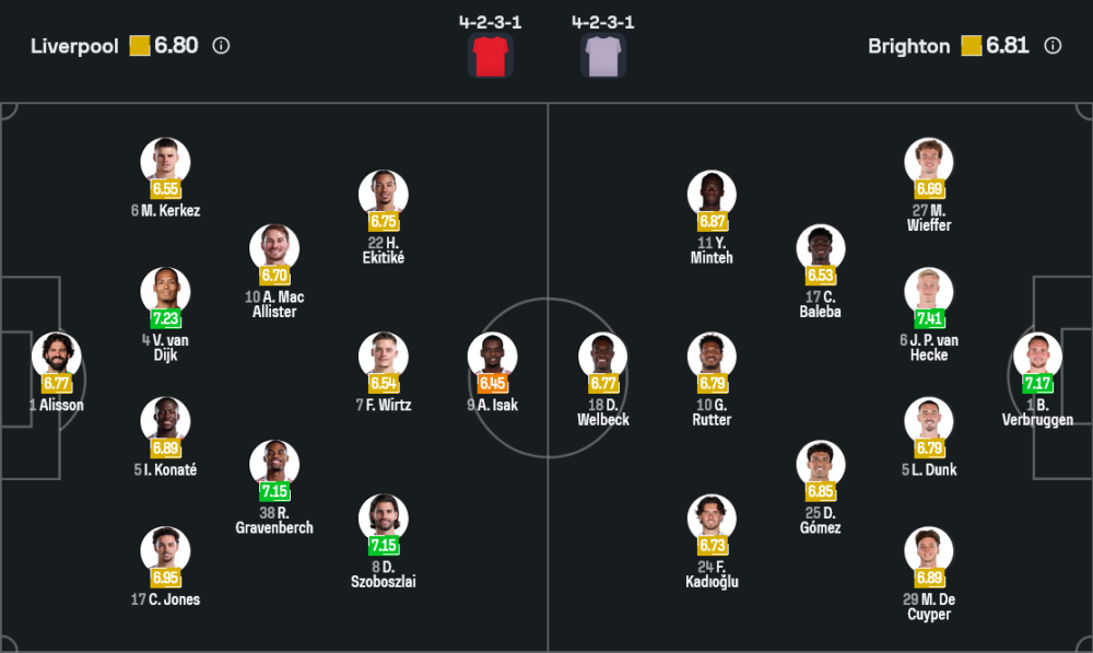 อย่างไรก็ดี จากรายชื่อที่คาดไว้ในต้นฉบับ แกนหลักยังอยู่ครบ โครงหลังมี อลิสซง เบ็คเกอร์ เฝ้าเสา คู่เซ็นเตอร์เป็น เฟอร์กิล ฟาน ไดย์ค ยืนคุมแนวรับร่วมกับ อิบราฮิม่า โกนาเต้ แดนกลางมี โดมินิค โซโบสไล, ไรอัน กราเวนเบิร์ช และ อเล็กซิส แม็คอัลลิสเตอร์ เป็นคนขับเคลื่อนเกม ส่วนแนวรุกคาดว่าจะใช้ เคอร์ติส โจนส์, อเล็กซานเดอร์ อิซัค และ ฟลอเรียน เวียร์ตซ์ เป็นสามประสานกดดันคู่แข่ง