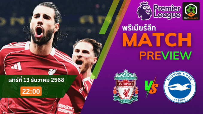 คืนวันเสาร์ที่ 13 ธันวาคม 2568 เวลา 22:00 น. เกมพรีเมียร์ลีกที่ห้ามกะพริบตาเมื่อ ลิเวอร์พูล อันดับ 10 เปิดแอนฟิลด์รับมือ ไบรท์ตัน อันดับ 8 บรรยากาศมันชัดตั้งแต่ก่อนเขี่ยบอล เพราะนี่คือเกมที่แต้มไม่ใช่แค่ตัวเลขในตาราง แต่มันคือ “แรงกดดัน” ที่กดทับสองทีมแบบคนละมุม เจ้าบ้านต้องเร่งเครื่องเพื่อไล่อันดับ ส่วนทีมเยือนมากับความมั่นใจว่าพวกเขามีอาวุธสวนกลับที่เจ็บจริง และจากข้อมูลต้นฉบับระบุชัด ราคาบอลวันนี้ ลิเวอร์พูลต่อ 0.75 เกมนี้จึงกลายเป็นบททดสอบว่า “ต่อแพงพอไหม” หรือ “รองมีของ” แฟนบอลที่ไล่เช็กคู่เดือดใน ตารางบอลวันนี้ บอกเลยคู่นี้คือของจริง เสียงเชียร์ในแอนฟิลด์มีสิทธิ์พุ่งเป็นคลื่น แต่ถ้าโดนสวนทีเดียว เกมอาจกลับหัวได้ทันที
