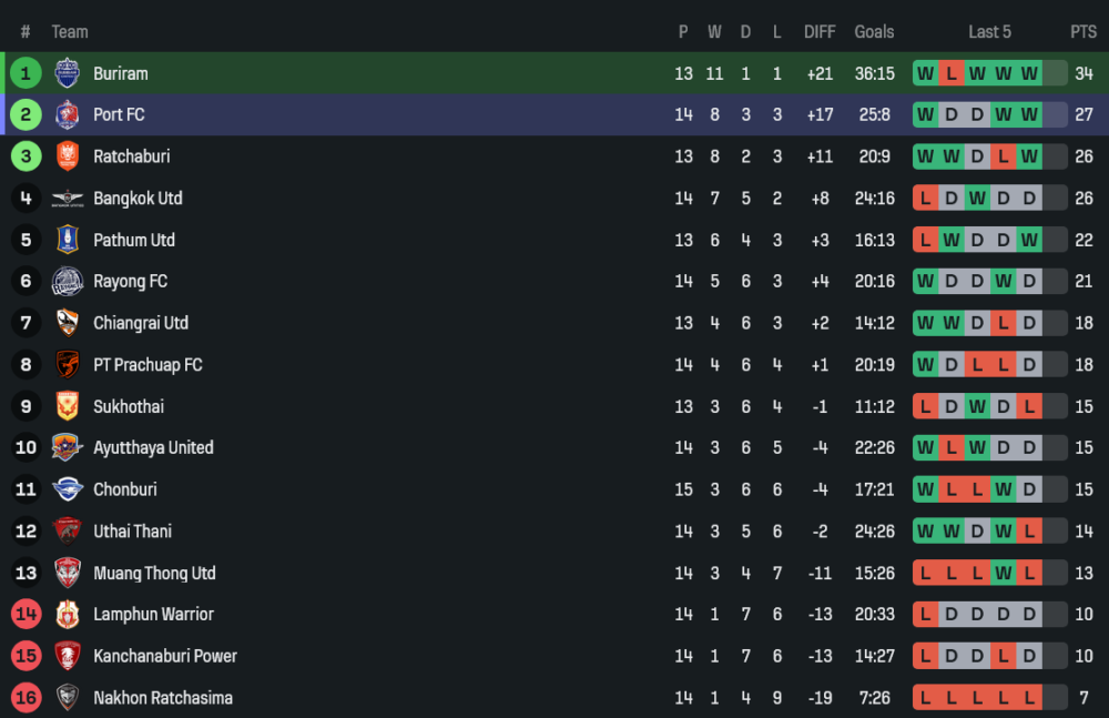 ในแง่ผลงาน 10 นัดหลังสุดในลีก บุรีรัมย์ชนะ 8 เสมอ 1 แพ้ 1 ยิงไป 28 ลูก เสีย 9 ลูก ขณะที่การท่าเรือ 10 นัดหลัง ชนะ 7 เสมอ 2 แพ้เพียงเกมเดียว ยิง 13 เสีย 11 ตัวเลขบอกชัดว่านี่คือเกมที่ยากจะมองข้ามโอกาสแบ่งแต้ม เพราะไม่มีใครอยากพลาดในแมตช์เดิมพันตำแหน่งหัวตารางแบบนี้