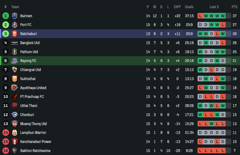 ตลอด 14 เกมในลีกฤดูกาลนี้ ระยองโชว์ฟอร์มเกินคาดสำหรับทีมน้องใหม่ ผลงานรวมคือชนะ 5 เสมอ 6 แพ้เพียง 3 นัด ยิงได้ 20 ประตู เสีย 16 ประตู นั่นหมายความว่าเกมของระยองมีประตูเกิดขึ้นเฉลี่ยถึง 2.57 ลูกต่อเกม และเสียเฉลี่ยประมาณ 1.14 ประตูต่อแมตช์ จุดเด่นคือการเล่นในบ้านที่ดุดัน ข้อมูลระบุว่าระยองใช้เวลาเฉลี่ยราว 31 นาทีในสนามเหย้าก่อนจะพังตาข่ายคู่แข่งได้ และมีถึง 60 เปอร์เซ็นต์ของเกมเหย้าที่ทั้งสองฝ่ายยิงประตูกันได้ทั้งคู่ นั่นสะท้อนว่าแนวรุกมีพิษสง แต่แนวรับก็ยังเปิดช่องให้โดนสวนกลับอยู่บ้าง