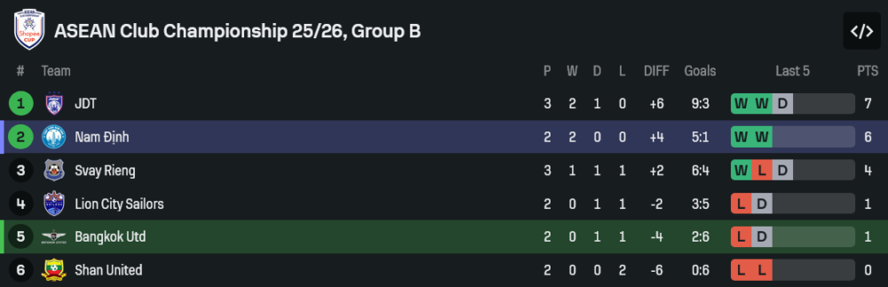 🟢 ฟอร์มล่าสุด นัม ดินห์ เอฟซี