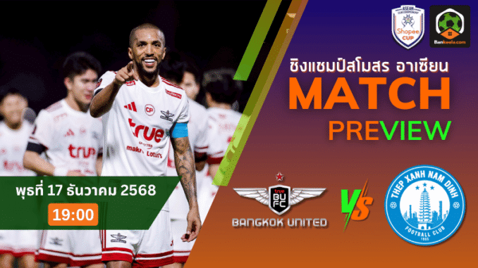 ศึกบอลถ้วยระดับภูมิภาคอย่าง ชิงแชมป์สโมสรอาเซียน คืนวันพุธที่ 17 ธันวาคม 2568 เวลา 19.00 น. ที่สนามทรู บีจี สเตเดียม พร้อมระเบิดความมันส์เมื่อเจ้าถิ่น ทรู แบงค็อก ยูไนเต็ด เปิดบ้านรับมือทีมแกร่งจากเวียดนามอย่าง นัม ดินห์ เอฟซี ตามโปรแกรมในหน้า ตารางบอลวันนี้ เกมนี้ถูกจับตามองอย่างหนักทั้งเรื่องศักดิ์ศรีไทยเวียดนาม และเรื่องหน้าตาของลีกอาเซียน เพราะต่างฝ่ายต่างมีสไตล์บุกดุดันไม่ยอมถอยง่ายๆ