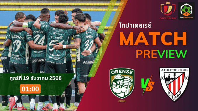 คืนวันศุกร์ที่ 19 ธันวาคม 2568 เวลา 01.00 น. บอลถ้วยสเปนเดือดจัดเมื่อศูนย์รวมบอลรองจอมล้มยักษ์อย่าง โอเรนเซ เปิดรังเอสตาดิโอ เด โอ คูโต้ รับการมาเยือนของยักษ์ใหญ่แคว้นบาสก์ แอธเลติก บิลเบา ในศึก โกปาเดลเรย์ รอบที่มีเดิมพันเป็นตั๋วผ่านเข้าสู่รอบ 16 ทีมสุดท้าย ตัวเลขหน้าแฮนดิแคปยกให้ทีมเยือนเป็นต่อชัดเจน แต่ถ้ามองจากฟอร์มเจ้าถิ่นในรายการนี้ ต้องบอกว่าราคาไม่ได้ขู่ใครง่ายๆ และเป็นคู่ที่โคตรเหมาะจะเอาลงโพยของคอบอลที่นั่งส่อง ตารางบอลวันนี้ กันอยู่