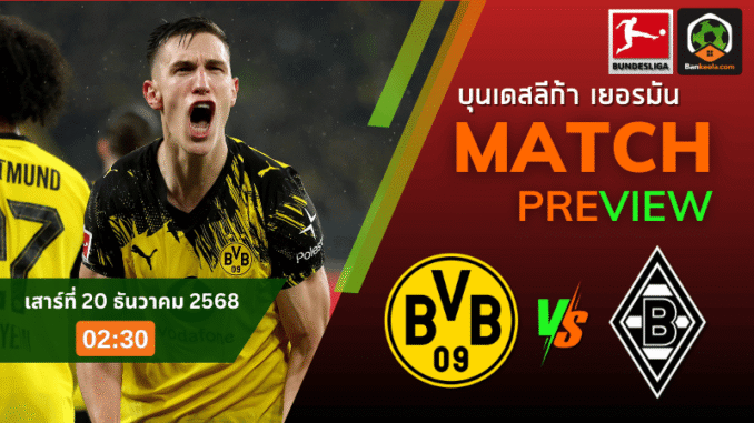 ค่ำคืนวันเสาร์ที่ 20 ธันวาคม 2568 เวลา 02.30 น. แฟนบอลเมืองเบียร์เตรียมเปิดจอรอชมศึก บุนเดสลีกา คู่เดือดที่สนามซิกนัล อิดูน่า พาร์ค เมื่อ โบรุสเซีย ดอร์ทมุนด์ ทีมอันดับ 3 เปิดบ้านรับการมาเยือนของ โบรุสเซีย มึนเช่นกลัดบัค อันดับ 11 เกมนี้เจ้าถิ่นถูกยกให้เหนือกว่าอย่างชัดเจนตามเรตเปิดบ้านต่อ 1.25 แต่ด้วยสถานการณ์ล่าสุดทั้งสองทีมไม่ได้แตกต่างกันมากในเรื่องความดับร้อนของฟอร์ม ทำให้บรรยากาศก่อนแข่งร้อนแรงยิ่งกว่าอากาศปลายปี แฟนบอลและสายลงทุนต่างหันมาจับตาคู่ดึกใน ตารางบอลวันนี้ อย่างใกล้ชิด เพราะนี่คือแมตช์ที่พร้อมระเบิดเกมรุกจากทั้งสองฝั่งแบบไม่มีออมมือ โดยเฉพาะแนวรุกเจ้าถิ่นที่ได้เล่นต่อหน้า “เหลืองดำอาร์มี่” เต็มความจุ