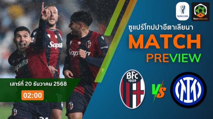 ค่ำคืนวันเสาร์ที่ 20 ธันวาคม 2568 เวลา 02.00 น. แฟนกัลโช่ต้องตั้งปลุกให้ดี เพราะนี่คือศึก ซูเปอร์ คัพ อิตาลี รอบรองชนะเลิศที่ไม่มีคำว่ากั๊ก เมื่อ โบโลญญ่า ของ วินเชนโซ อิตาเลียโน่ ดวลเดือดกับแชมป์ลีกอย่าง อินเตอร์ มิลาน ที่สนามเป็นกลาง คิง ซาอุด ยูนิเวอร์ซิตี้ กลางกรุงริยาดห์ เกมนี้จึงไม่ใช่แค่เรื่องเกียรติยศ แต่คือการพิสูจน์ว่าทีมไหนพร้อมยึดบัลลังก์ลูกหนังแดนมะกะโรนีในซีซั่นนี้