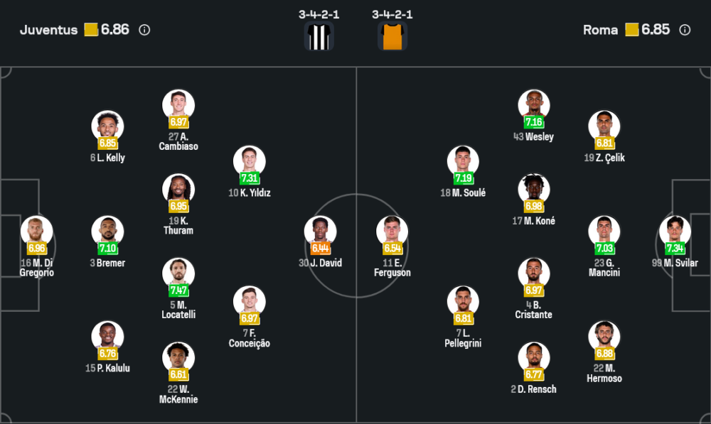 ด้านโรม่า กาสเปรินี่ขึ้นชื่อเรื่องแท็กติกเพรสซิ่งสูงและการเคลื่อนที่ของตัวรุก การมี ซูเล่ กับ เปลเลกรินี่ ยืนหลังกองหน้าทำให้เกมรุกหมาป่ามีทั้งการเลี้ยงเจาะและการจ่ายคิลเลอร์พาส เฟอร์กูสันจะคอยพักบอลและฉีกไปรับลูกครอสจากวิงแบ็กทั้งสองฝั่ง จุดที่ต้องจับตาคือพื้นที่หน้าเซ็นเตอร์ของยูเว่ ถ้า โลคาเตลลี่ กับ ตูราม ปล่อยให้ เปลเลกรินี่ มีเวลามองเกมมากเกินไป เจ้าบ้านอาจโดนยิงไกลหรือแทงทะลุช่องเล่นงานได้ทุกเมื่อ
