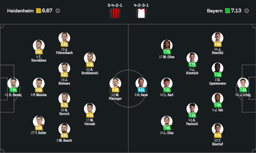 คู่กลางใช้ โยชัว คิมมิค คุมจังหวะเชื่อมเกมจากหลังสู่หน้า ร่วมกับ อเล็กซานดร้า พาฟโลวิค กองกลางพลังหนุ่มที่เน้นวิ่งไล่บีบพื้นที่ ขณะที่สามตัวรุกด้านหลังหัวหอก แฮร์รี่ เคน คือ ไมเคิ่ล โอลิเซ่, เลนนาร์ท คาร์ล และ หลุยส์ ดิอ๊าซ ที่เพิ่งพ้นโทษแบนกลับมาทำเกมริมเส้นฝั่งซ้าย ความเร็วและการเลี้ยงกินตัวของเขาคืออาวุธสำคัญในการเจาะแนวรับทีมเล็ก เกมนี้เสือใต้ยังขาด คอนราด ไลเมอร์ ที่ติดโทษแบน รวมถึงตัวเจ็บอย่าง นิโคลัส แจ็คสัน, มานูเอล นอยเออร์, ยามาล มูเซียล่า และ ซาช่า โบอี แต่จากรายชื่อที่มีอยู่ต้องบอกว่ายังจัดเป็นระดับท็อปของลีกแบบไร้ข้อกังขา