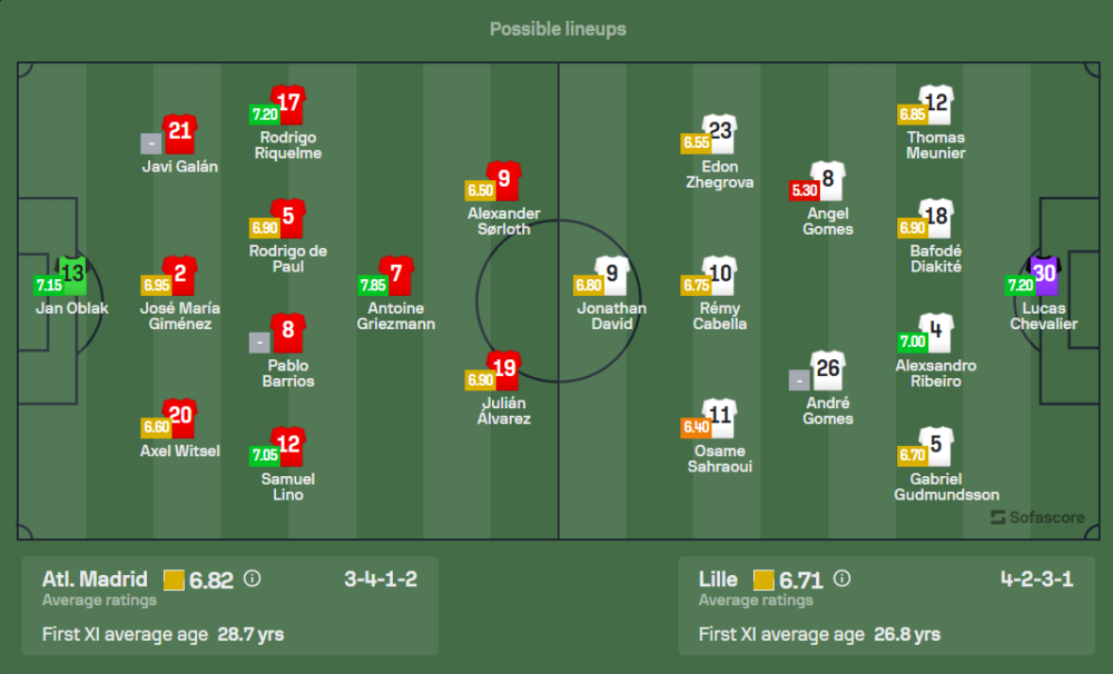 กุนซือมากประสบการณ์ ดิเอโก้ ซิเมโอเน่ ต้องพบกับความท้าทายในการจัดทัพ เนื่องจากตัวหลักหลายรายยังคงบาดเจ็บ ไม่ว่าจะเป็น เซซาร์ อัซปิลิกวยต้า, มาร์กอส ยอเรนเต้ และ โรบิน เลอ นอร์มานด์ ที่หมดสิทธิ์ลงสนาม อย่างไรก็ตาม การกลับมาของ โตมัส เลอมาร์ ช่วยเสริมความมั่นใจให้ทีมในเกมนี้ พวกเขาคาดว่าจะมาในระบบ 5-3-2 โดยมี โรดริโก้ เด ปอล, โกเก้ และ ปาโบล บาร์ริออส เป็นสามประสานคอยสร้างสรรค์เกมรุก และมีกองหน้าคู่หลักอย่าง อเล็กซานเดอร์ ซอร์ลอธ และ อองตวน กรีซมันน์ ที่พร้อมจะไล่ล่าตาข่าย