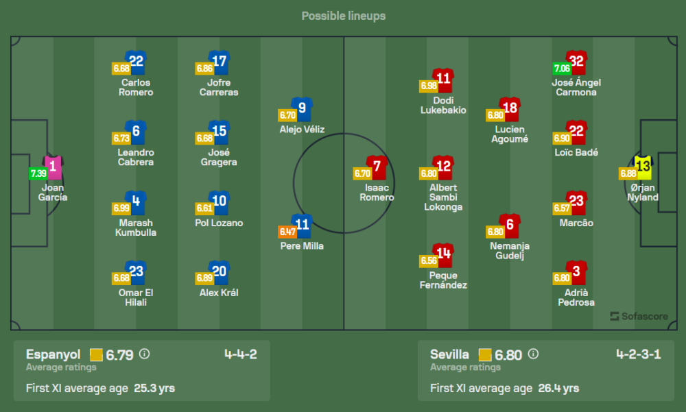ทางฝั่งทีมเยือน เซบีย่า กุนซือจะยังคงต้องขาด ซาอูล ญิเกซ กองกลางที่ยังมีอาการบาดเจ็บที่ต้นขา แต่ข่าวดีคือจะได้ ต็องกีย์ นิอันซู กลับมาจากโทษแบน ช่วยเสริมความแข็งแกร่งในแนวรับ นอกนั้นนักเตะคนอื่นๆ ยังอยู่ครบ โดยจะจัดทัพมาในระบบ 4-3-3 เช่นเดียวกัน มี คิเดร่า เอชูเก้, อิซัค โรเมโร่ และ โดดี้ ลูเก้บาคิโอ้ ช่วยกันล่าสกอร์