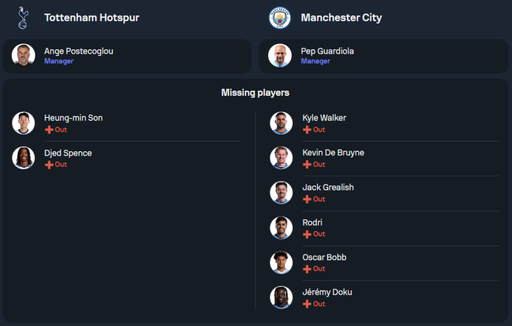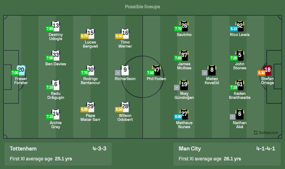 ฝั่งเจ้าบ้าน ท็อตแน่ม ฮ็อทสเปอร์ ภายใต้การคุมทีมของ แอนจ์ ปอสเตโคกลู กำลังประสบปัญหานักเตะบาดเจ็บ โดยเฉพาะกัปตันทีม ซน ฮึง-มิน ที่มีปัญหาเจ็บต้นขาอย่างต่อเนื่อง ทำให้ต้องพักยาว ขณะที่ เจด สเปนซ์ ฟูลแบ็กที่เคยทำประตูชัยในรอบก่อนหน้านี้ยังบาดเจ็บเช่นกัน ด้วยโปรแกรมที่แน่นหลายรายการ ปอสเตโคกลูจำเป็นต้องโรเตชั่นทีม ส่งผู้เล่นดาวรุ่งและตัวสำรองลงสนามในระบบ 4-3-3 นำทัพโดย เบรนแน่น จอห์นสัน, ริชาร์ลิซอน และ ทิโม แวร์เนอร์ ที่จะคอยช่วยกันไล่ล่าสกอร์