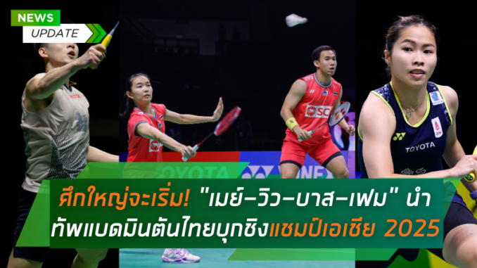 ทัพ แบดมินตันไทย เตรียมพร้อมสำหรับศึกสำคัญที่กำลังจะเริ่มขึ้นในรายการ แบดมินตัน เอเชีย แชมเปี้ยนชิพ 2025 ที่จัดขึ้นอย่างยิ่งใหญ่ ณ เมือง หนิงโป สาธารณรัฐประชาชนจีน ระหว่างวันที่ 8–13 เมษายน 2568 โดยการแข่งขันในครั้งนี้ถือเป็นหนึ่งในรายการที่มีความสำคัญและได้รับความสนใจจากวงการแบดมินตันทั่วเอเชีย เพราะนอกจากจะมี นักแบดมินตันระดับโลก จากหลากหลายประเทศเข้าร่วมแล้ว ยังมี เงินรางวัลรวมสูงถึง 500,000 ดอลลาร์สหรัฐ (ประมาณ 17 ล้านบาท) ที่รอให้ผู้ชนะได้ครอบครอง