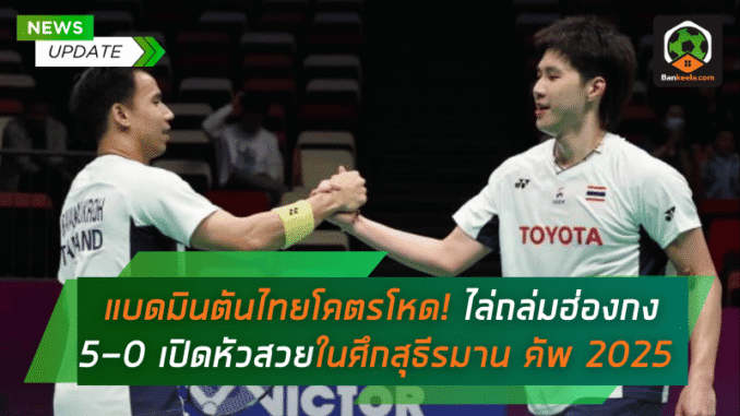 พลังแบดมินตันไทยประกาศศักดาในเวทีโลก! ทัพนักตบลูกขนไก่ทีมชาติไทยออกสตาร์ตศึก สุธีรมาน คัพ 2025 ได้อย่างเร้าใจ ไล่บดเอาชนะทีมชาติฮ่องกงแบบขาดลอย 5-0 คู่ ประเดิมเก็บชัยชนะนัดแรกในรอบแบ่งกลุ่ม กลุ่ม เอ ได้อย่างสวยหรู พร้อมเดินหน้าสู่แมตช์ถัดไปด้วยความมั่นใจเต็มเปี่ยม