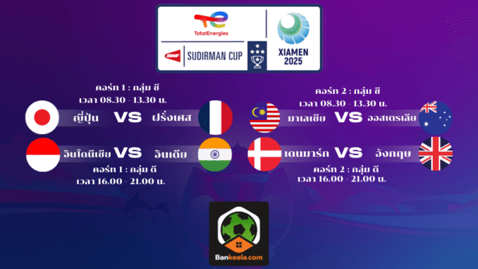 โปรแกรมถ่ายทอดสดการแข่งขัน แบดมินตัน สุธีรมาน คัพ 2025 (วันที่ 29 เมษายน 2568)