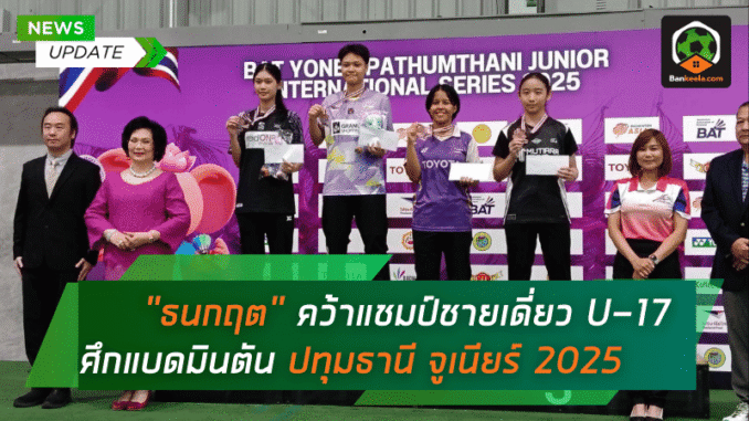 “อัลฟ่า” ธนกฤต เล็กยิ้ม นักตบลูกขนไก่ดาวรุ่งของไทย ระเบิดฟอร์มสุดร้อนแรงในศึกเยาวชนระดับนานาชาติ “บีเอที โยเน็กซ์ ปทุมธานี U-13 U-15 U-17 จูเนียร์ อินเตอร์เนชั่นแนล 2025” ด้วยการตบเอาชนะนักแบดมินตันจากมาเลเซียอย่าง โลว ซีฉี ไปแบบขาดลอย 2-0 เกม พร้อมผงาดคว้าแชมป์ชายเดี่ยวในรุ่นอายุไม่เกิน 17 ปี ไปครองได้อย่างสง่างาม ท่ามกลางเสียงเชียร์กระหึ่มที่สนาม สปิริต สเตเดียม จังหวัดปทุมธานี ซึ่งจัดการแข่งขันเมื่อวันที่ 25 พฤษภาคม 2568 ที่ผ่านมา