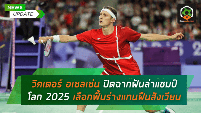 วงการแบดมินตันต้องพบกับข่าวใหญ่กลางดึก เมื่อ วิคเตอร์ อเซลเซ่น นักแบดมินตันชายเดี่ยวระดับตำนานของ ทีมชาติเดนมาร์ก ผู้เคยผงาดคว้า แชมป์โลก 2 สมัย และ เหรียญทองโอลิมปิก 2 ครั้ง ประกาศ ถอนตัวจากศึกชิงแชมป์โลกแบดมินตัน 2025 ที่กำลังจะระเบิดศึกในปลายเดือนสิงหาคมนี้ที่กรุงปารีส ประเทศฝรั่งเศส สร้างความสะเทือนต่อทั้งแฟนกีฬาและวงการลูกขนไก่ทั่วโลกอย่างไม่ทันตั้งตัว