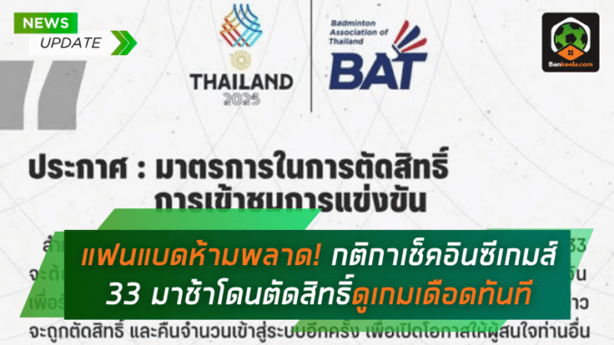 เพื่อให้การจัดการแข่งขันกีฬา แบดมินตัน ในมหกรรมกีฬา ซีเกมส์ 33 เป็นไปอย่างเป็นระเบียบ และเปิดโอกาสให้แฟนกีฬาเข้าชมได้มากที่สุด เจ้าภาพได้ออกมาตรการชัดเจนสำหรับผู้ที่ “สำรองสิทธิ์เข้าชม” ไว้ล่วงหน้า แต่ไม่เดินทางมาเช็คอินตามเวลาที่กำหนด ซึ่งถือเป็นมาตรการสำคัญที่แฟนกีฬาไทยต้องรู้ก่อนเดินทางไปสนาม